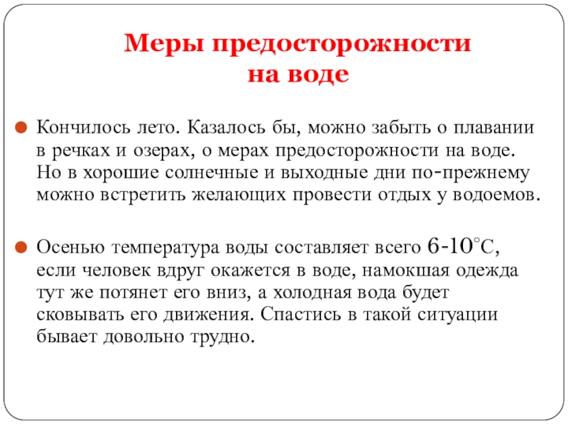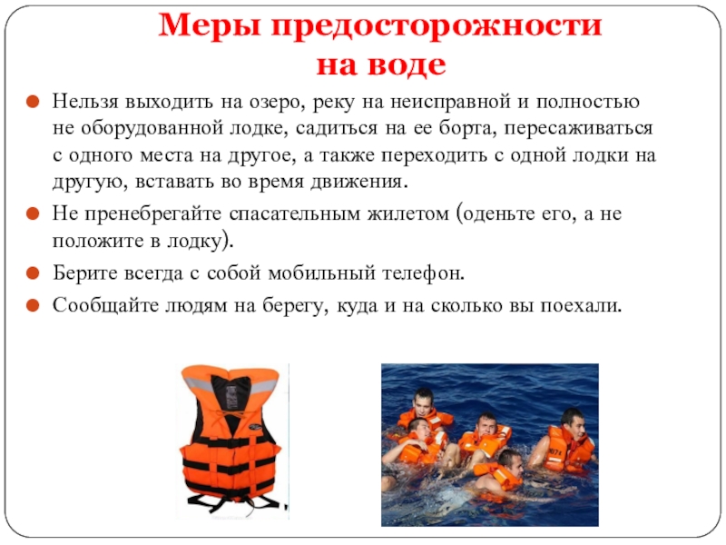 Меры предосторожности на воде.