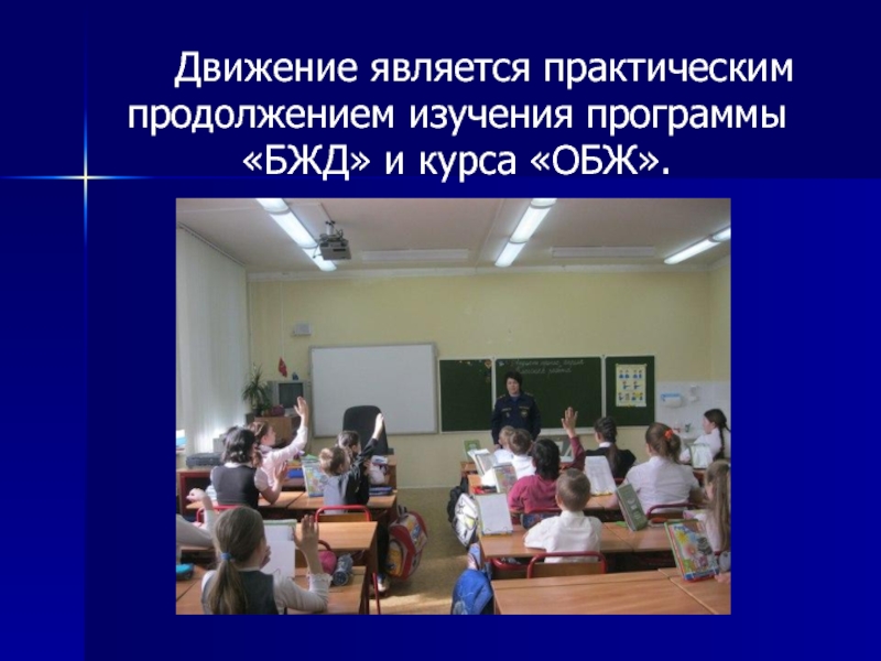 Слайд 8 Движение является практическим продолжением изучения программы «БЖД» и курса «ОБЖ».