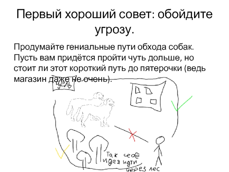 Слайд 3Первый хороший совет: обойдите угрозу.