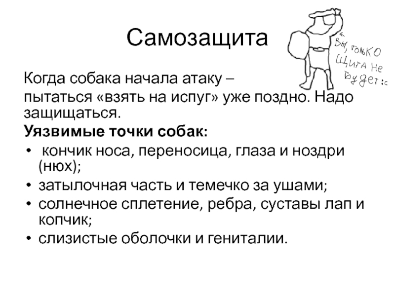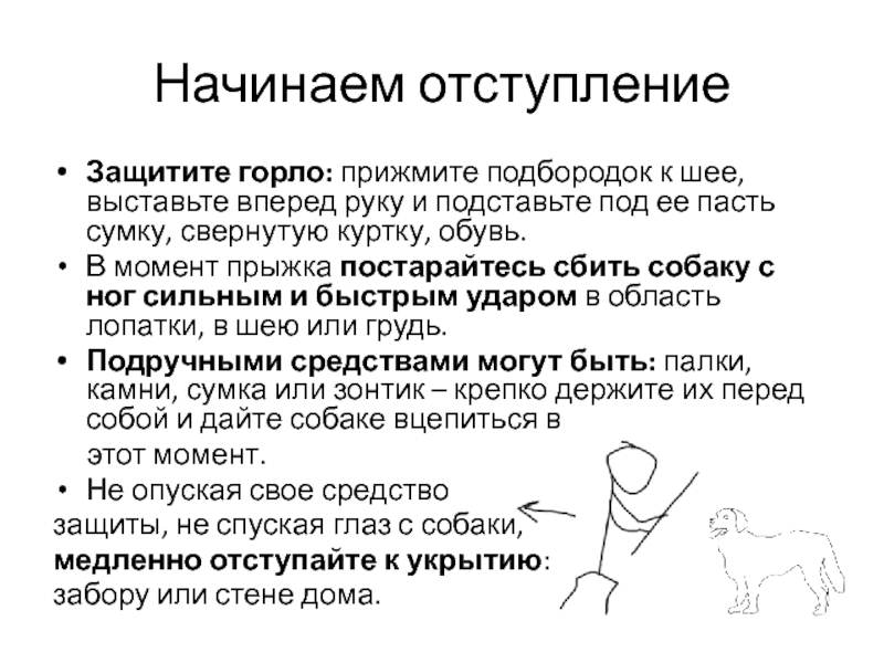 защиты, не спуская глаз с собаки,