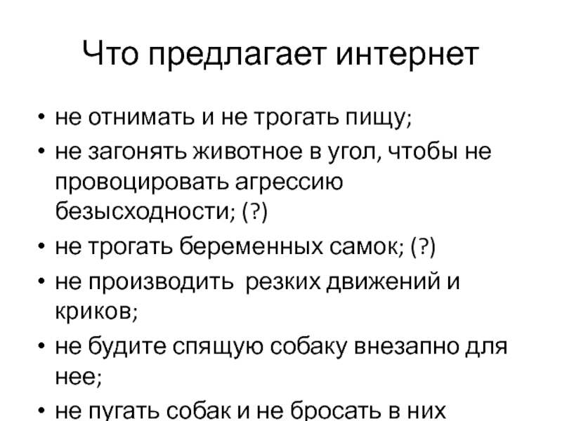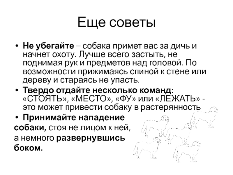 не пугать собак и не бросать в них камни;