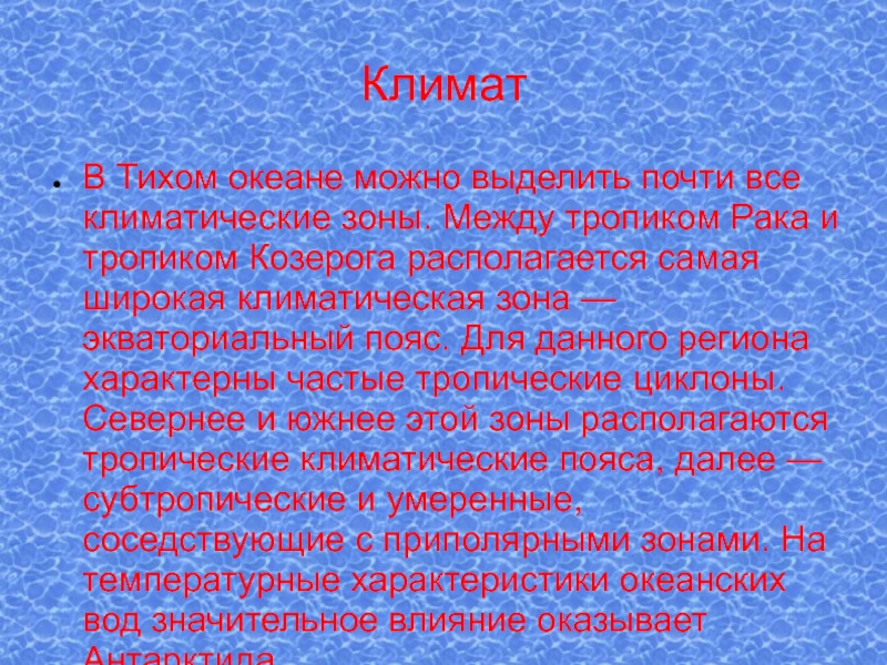 В Тихом океане можно выделить почти все климатические зоны. Между
