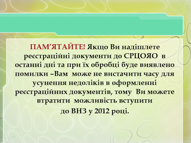 Слайд 48ПАМ’ЯТАЙТЕ! Якщо Ви надішлете реєстраційні документи до СРЦОЯО в останні