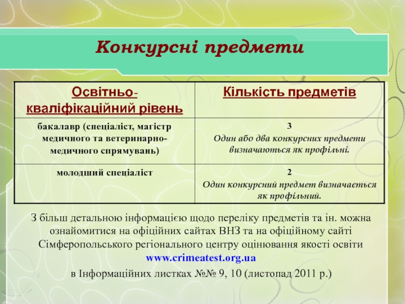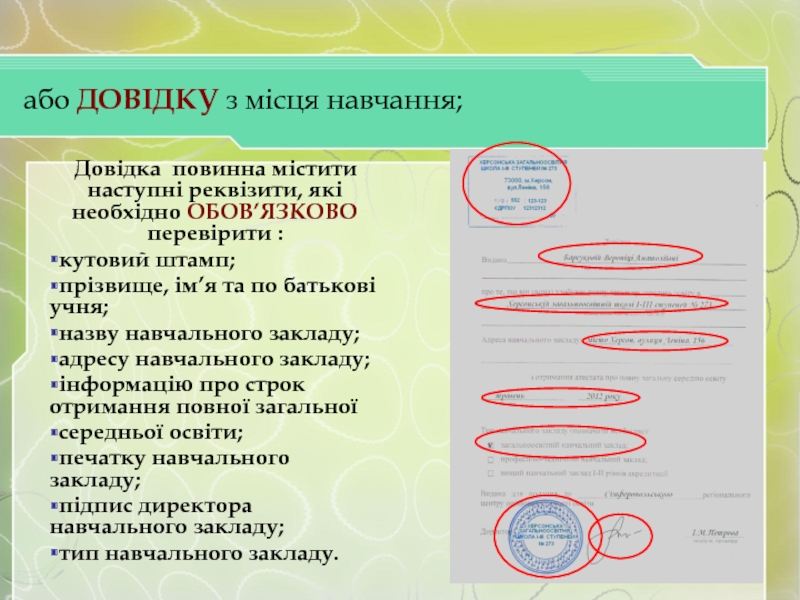 Слайд 39КОНТРОЛЬНО-ІНФОРМАЦІЙНИЙ ЛИСТ повинен залишитися в абітурієнта до моменту отримання ним