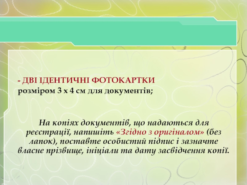 На копіях документів, що надаються для реєстрації, напишіть «Згідно з