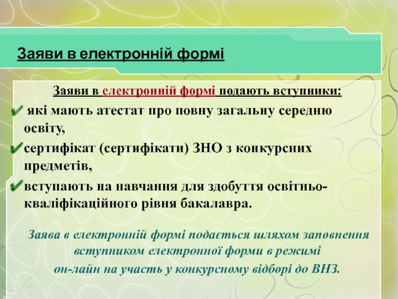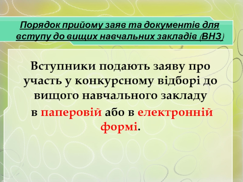 Слайд 8Порядок прийому заяв та документів для вступу до вищих навчальних