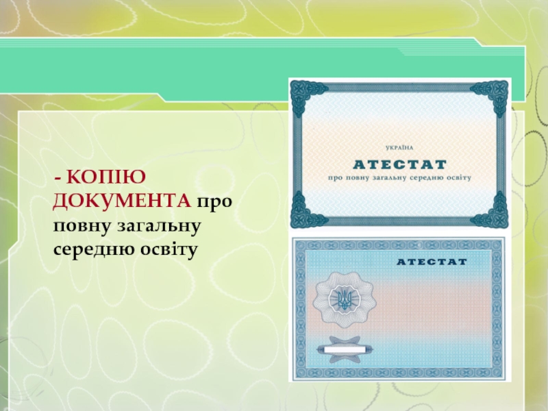 - КОПІЮ ДОКУМЕНТА про повну загальну середню освіту