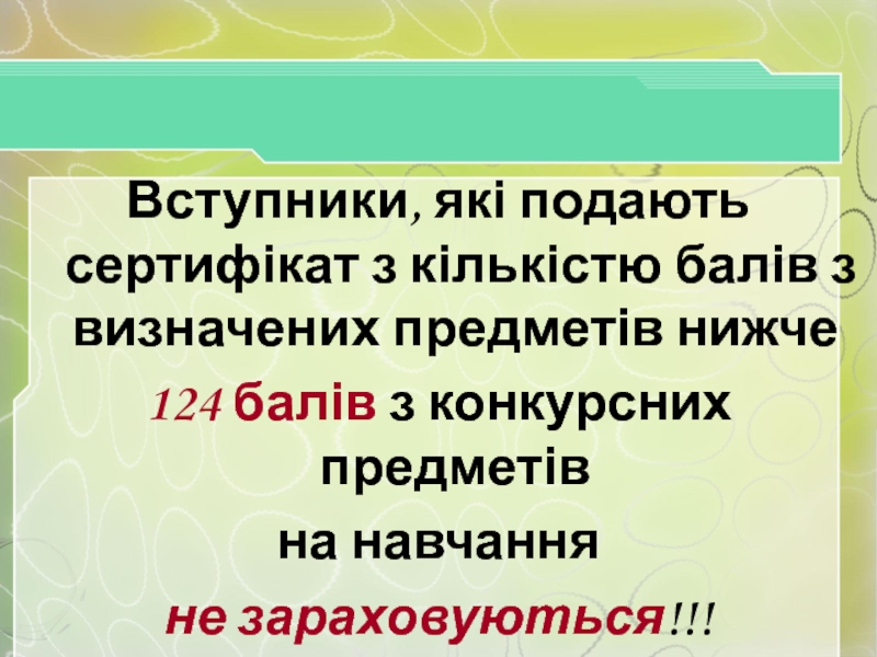 Слайд 15Вступники, які подають сертифікат з кількістю балів з визначених предметів