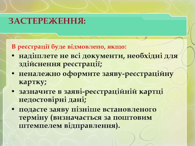Слайд 43Про факт ВІДМОВИ В РЕЄСТРАЦІЇ