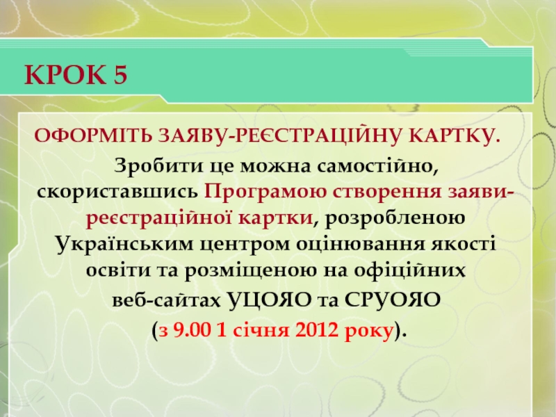 створення заяви-реєстраційної картки, розробленою Українським центром оцінювання якості освіти та