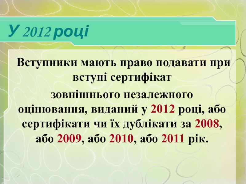 Слайд 1Вступна кампанія та ЗНО 2012 року: що нового?