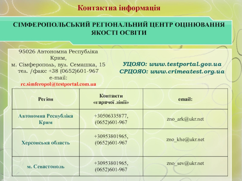 СІМФЕРОПОЛЬСЬКИЙ РЕГІОНАЛЬНИЙ ЦЕНТР ОЦІНЮВАННЯ ЯКОСТІ ОСВІТИ