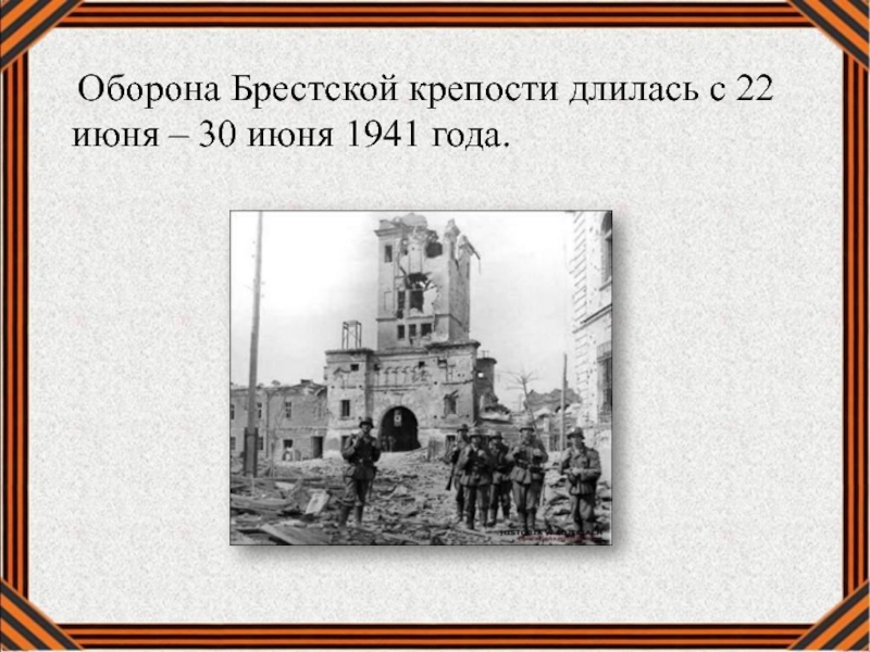 Слайд 9 Оборона Брестской крепости длилась с 22 июня –