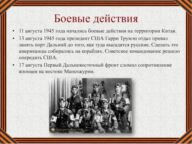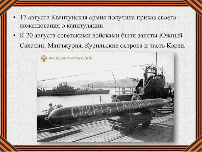 Слайд 1917 августа Квантунская армия получила приказ своего командования о капитуляции.