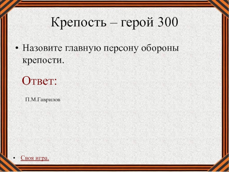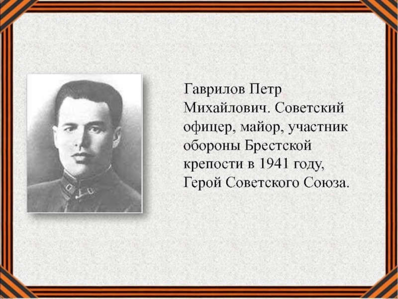 Слайд 8 Гаврилов Петр Михайлович. Советский офицер, майор, участник обороны