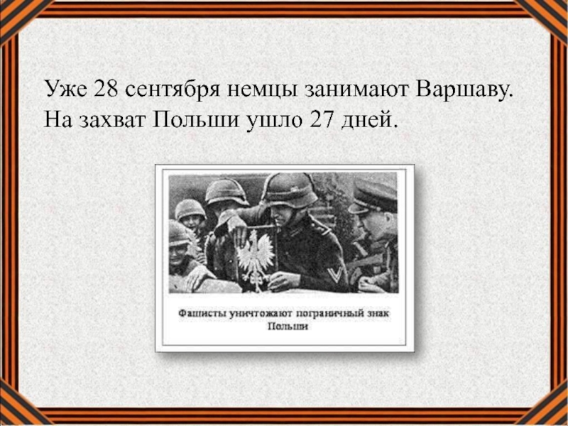 Слайд 4Уже 28 сентября немцы занимают Варшаву.