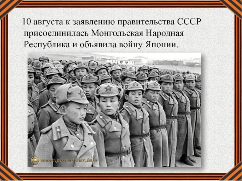 Слайд 17 10 августа к заявлению правительства СССР присоединилась Монгольская