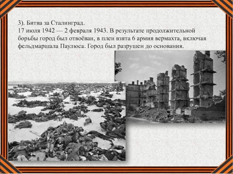 6 армия вермахта, включая фельдмаршала Паулюса. Город был разрушен до основания.