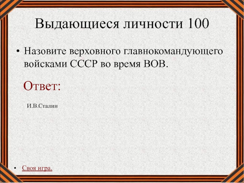 Назовите верховного главнокомандующего войсками СССР во время ВОВ.