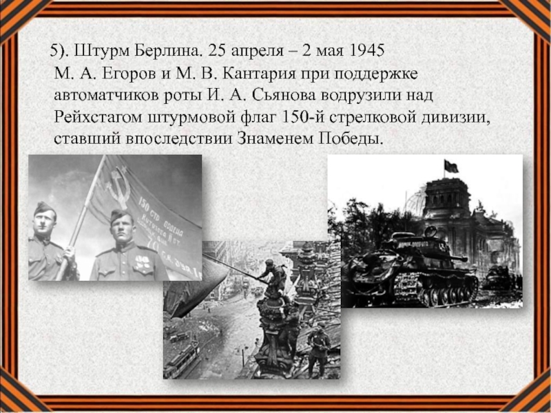 Слайд 15 5). Штурм Берлина. 25 апреля – 2 мая 1945