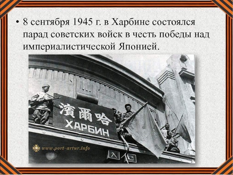 Слайд 208 сентября 1945 г. в Харбине состоялся парад советских войск