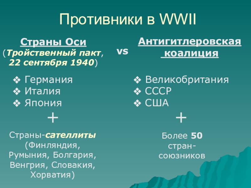 Страны-сателлиты (Финляндия, Румыния, Болгария, Венгрия, Словакия,