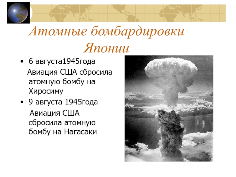 Слайд 29Атомные бомбардировки Японии