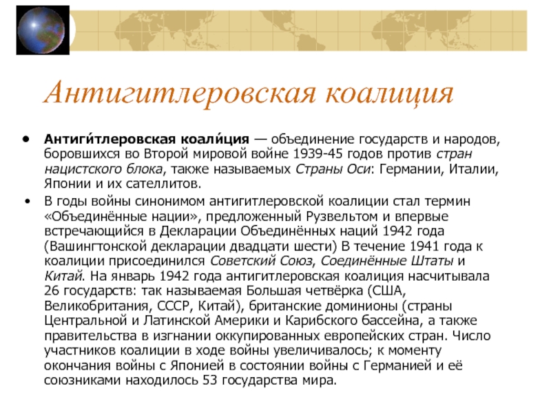 мировой войне 1939-45 годов против стран нацистского блока, также называемых