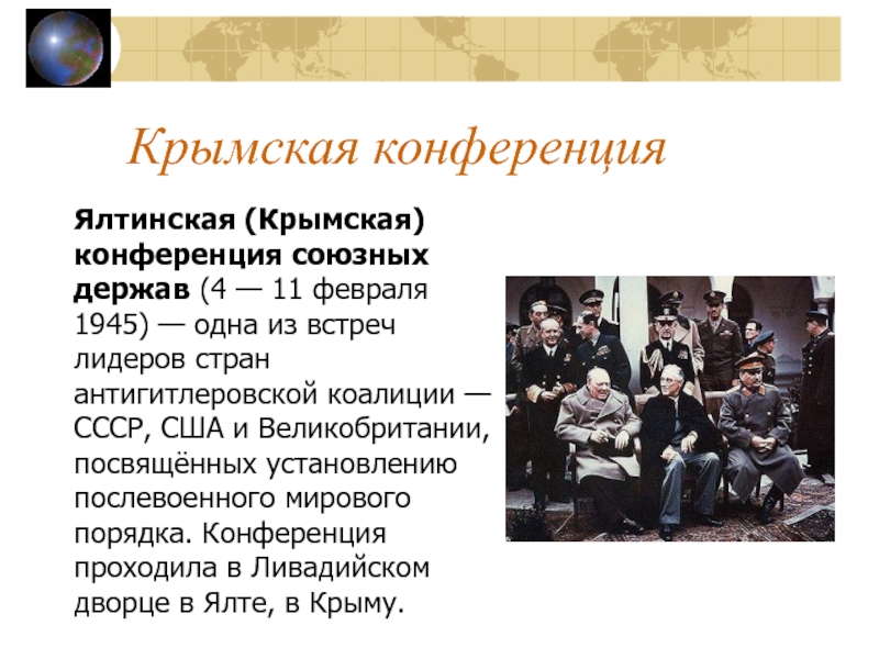 Слайд 27Крымская конференция