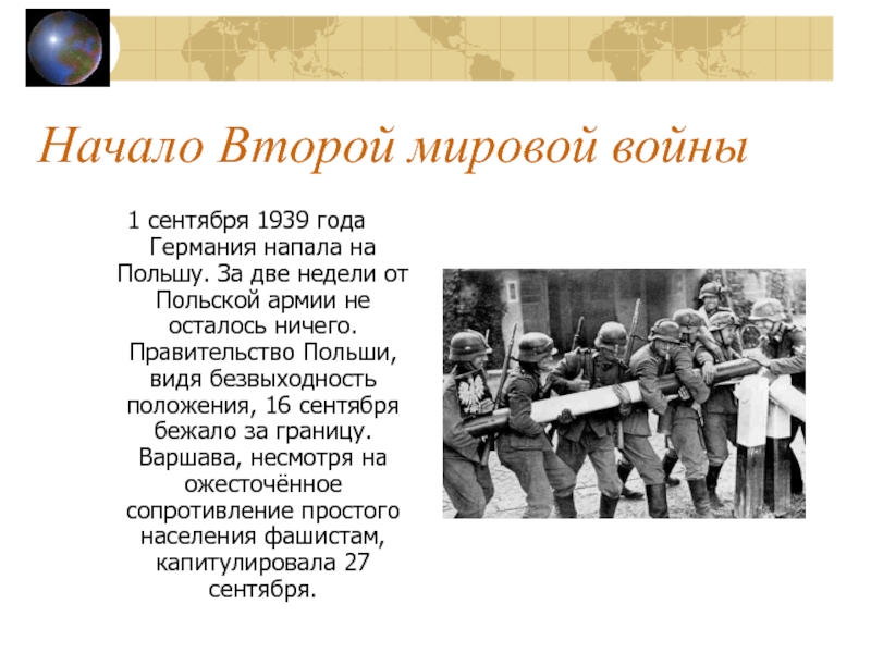 Слайд 3Начало Второй мировой войны