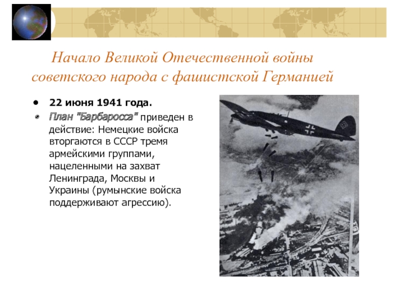 Слайд 13Начало Великой Отечественной войны