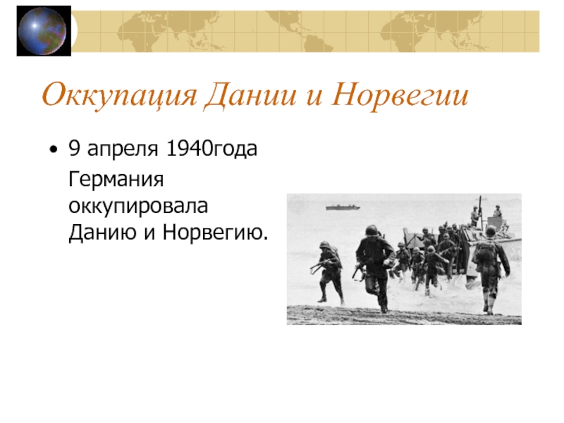 Слайд 7Оккупация Дании и Норвегии
