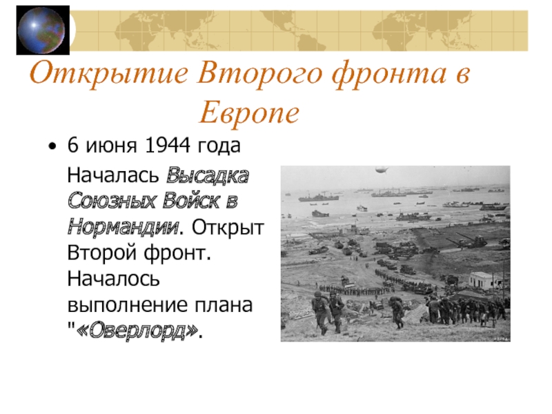 Слайд 25Открытие Второго фронта в Европе