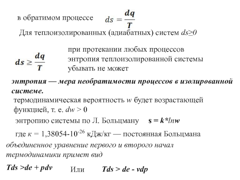 Для теплоизолированных (адиабатных) систем ds≥0