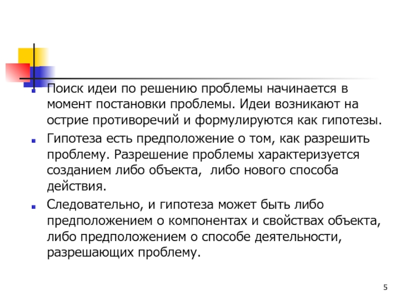 Слайд 5Поиск идеи по решению проблемы начинается в момент постановки проблемы.