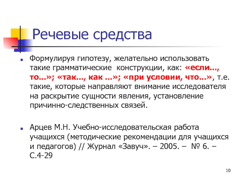 Формулируя гипотезу, желательно использовать такие грамматические конструкции, как: «если...,