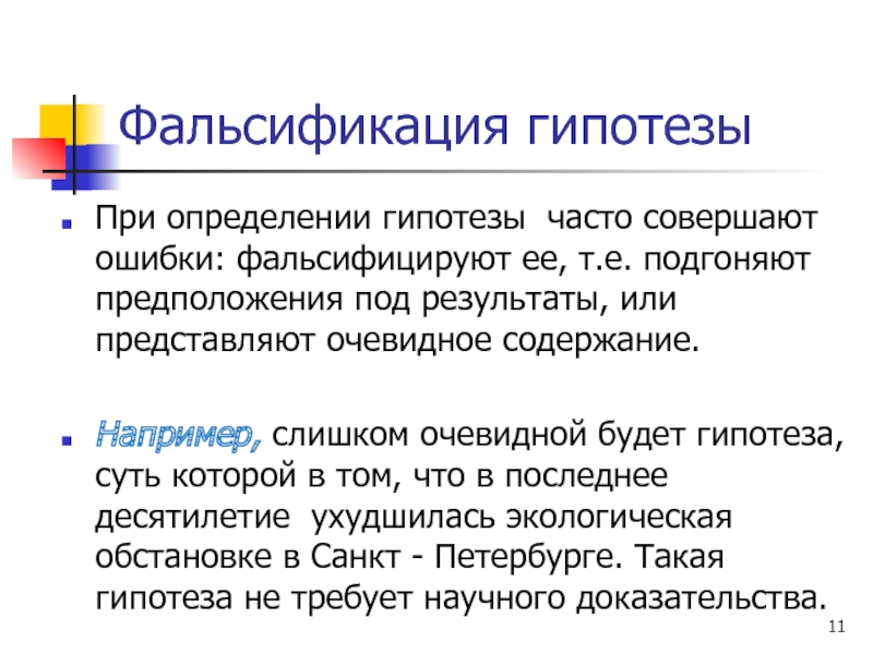 При определении гипотезы часто совершают ошибки: фальсифицируют ее, т.е.