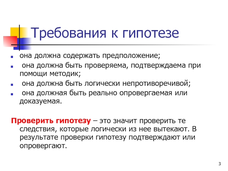 Проверить гипотезу – это значит проверить те следствия, которые логически из нее вытекают. В результате проверки гипотезу подтверждают или опровергают.