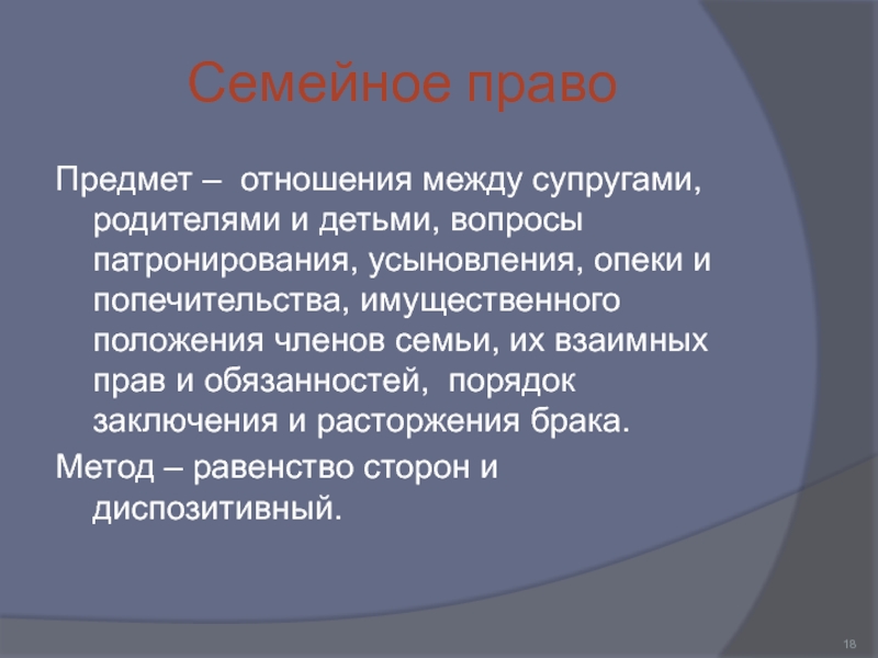 Предмет – отношения между супругами, родителями и детьми, вопросы