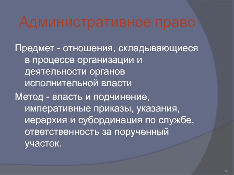 - императивный - метод властных предписаний, субординации, основанный на запретах, обязанностях, наказаниях;