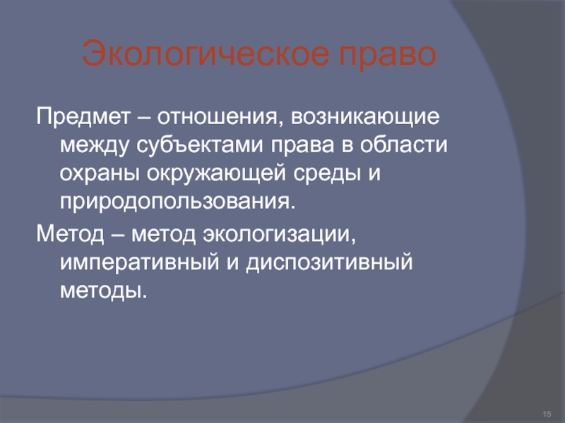 Предмет – вопросы землепользования и землеустройства, сохранения и распределения