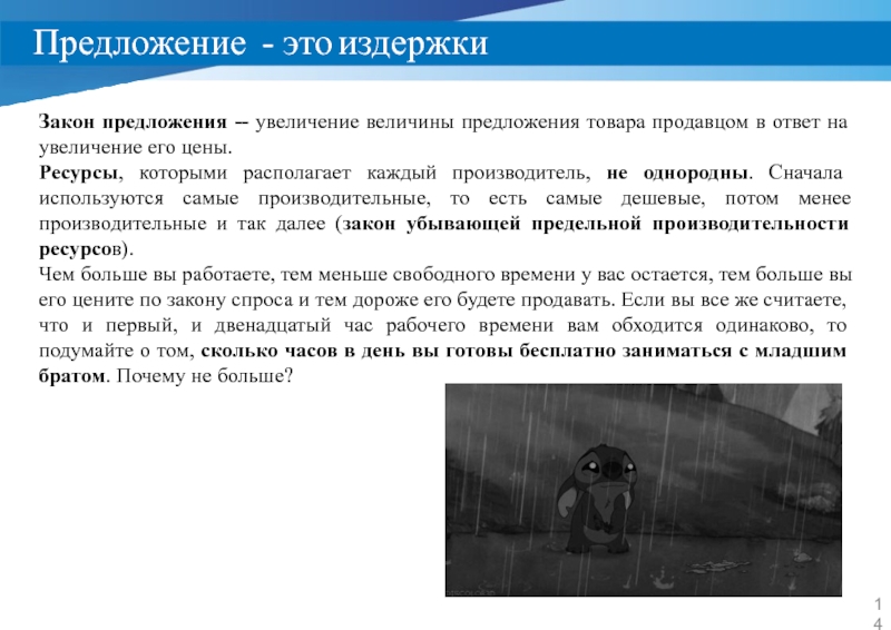 Слайд 14Предложение - это издержки