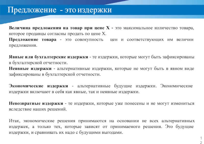Слайд 12Предложение - это издержки