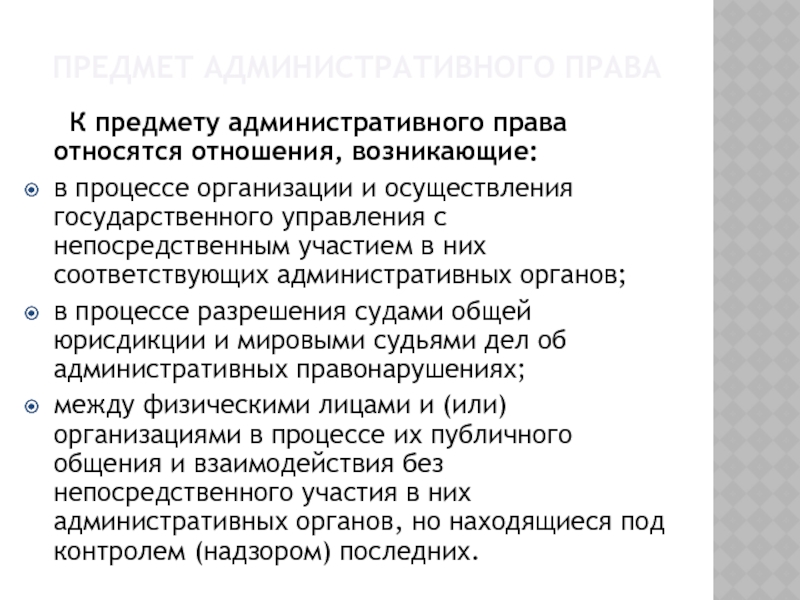 предмета административно-правового регулирования.