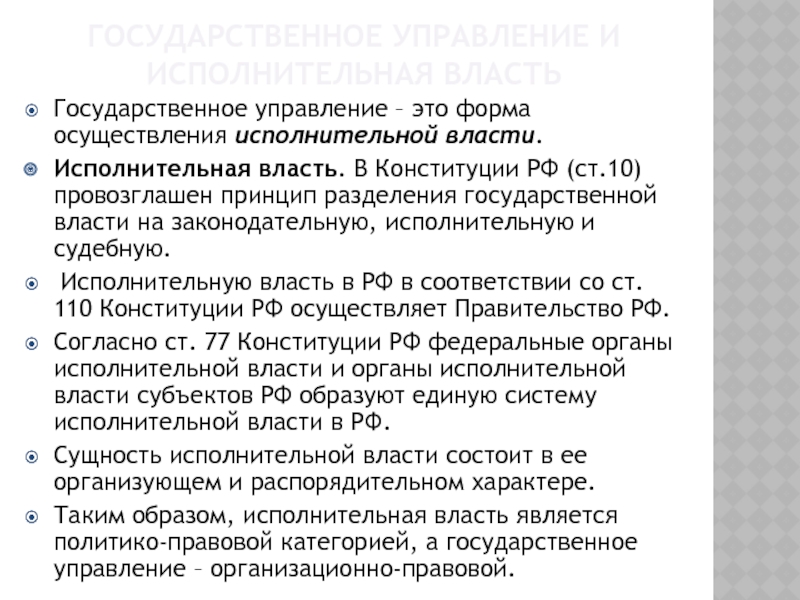 Слайд 13Государственное управление и исполнительная власть
