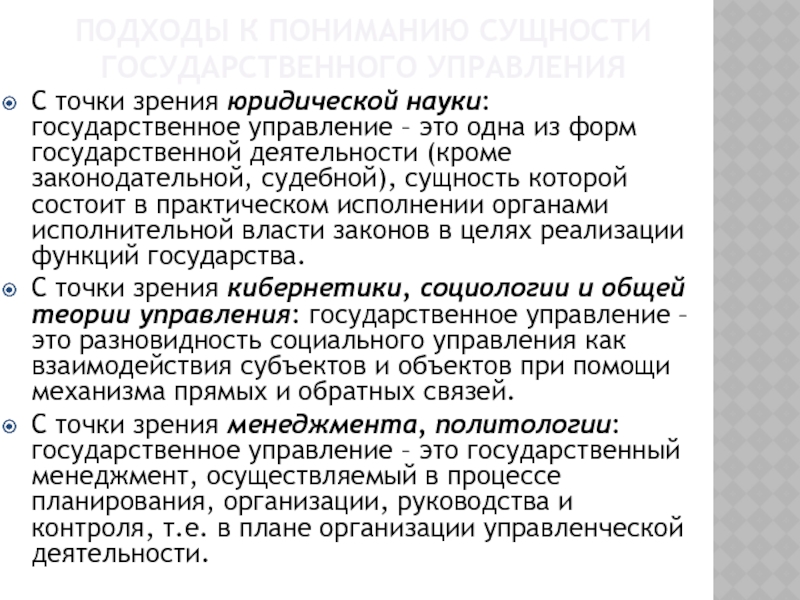 Слайд 12Подходы к пониманию сущности государственного управления