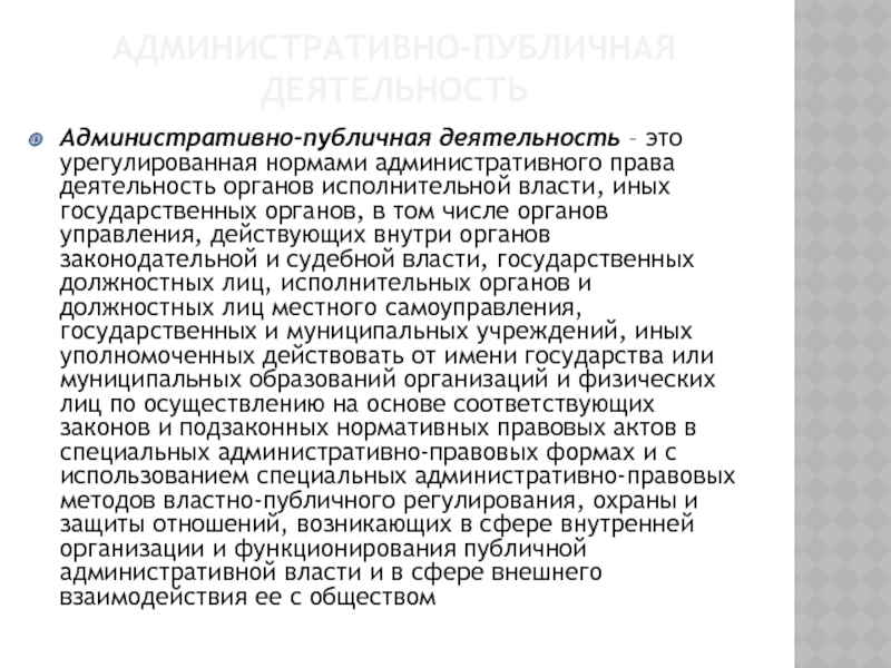 Административно-публичная деятельность – это урегулированная нормами административного права деятельность