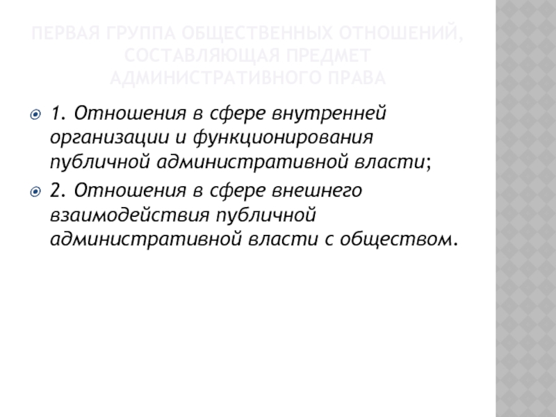 Группы общественных отношений, составляющие предмет административного права: