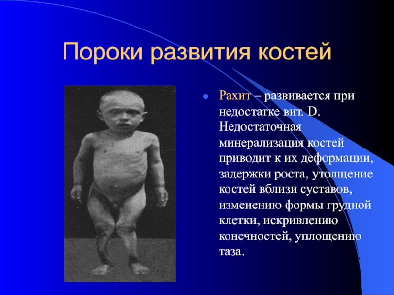 минерализация костей приводит к их деформации, задержки роста, утолщение костей