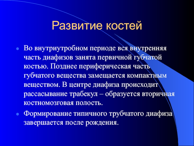 Формирование типичного трубчатого диафиза завершается после рождения.